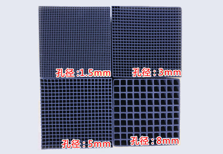 普遍使用1.5mm孔径的蜂窝活性炭,没有特殊要求,默认发货为1.5mm孔径的,用户也可以根据用途来确定使用蜂窝活性炭的孔径。孔径大风阻小,孔径小风阻就大。一般情况都使用1.5mm孔径的,孔径3.0mm以上适合大风量,废气粒子大的环境,中孔大孔的蜂窝活性炭在高风量,大分子废气中是不会影响净化效果的,而且还会提高与废气接触的面积。